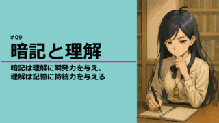記憶術 暗記と理解:暗記は理解に瞬発力を与え、理解は記憶に持続力を与える 暗記は理解に瞬発力を与え、理解は記憶に持続力を与える。この相互補完によって、勉強は「退屈な作業」から「楽しい趣味」へと変化する。語呂合わせや意味づけによる記憶術、理解を通じた学習効率の向上。勉強が楽しくなる仕組みを、やさしく解説。 2025.10.09 記憶術